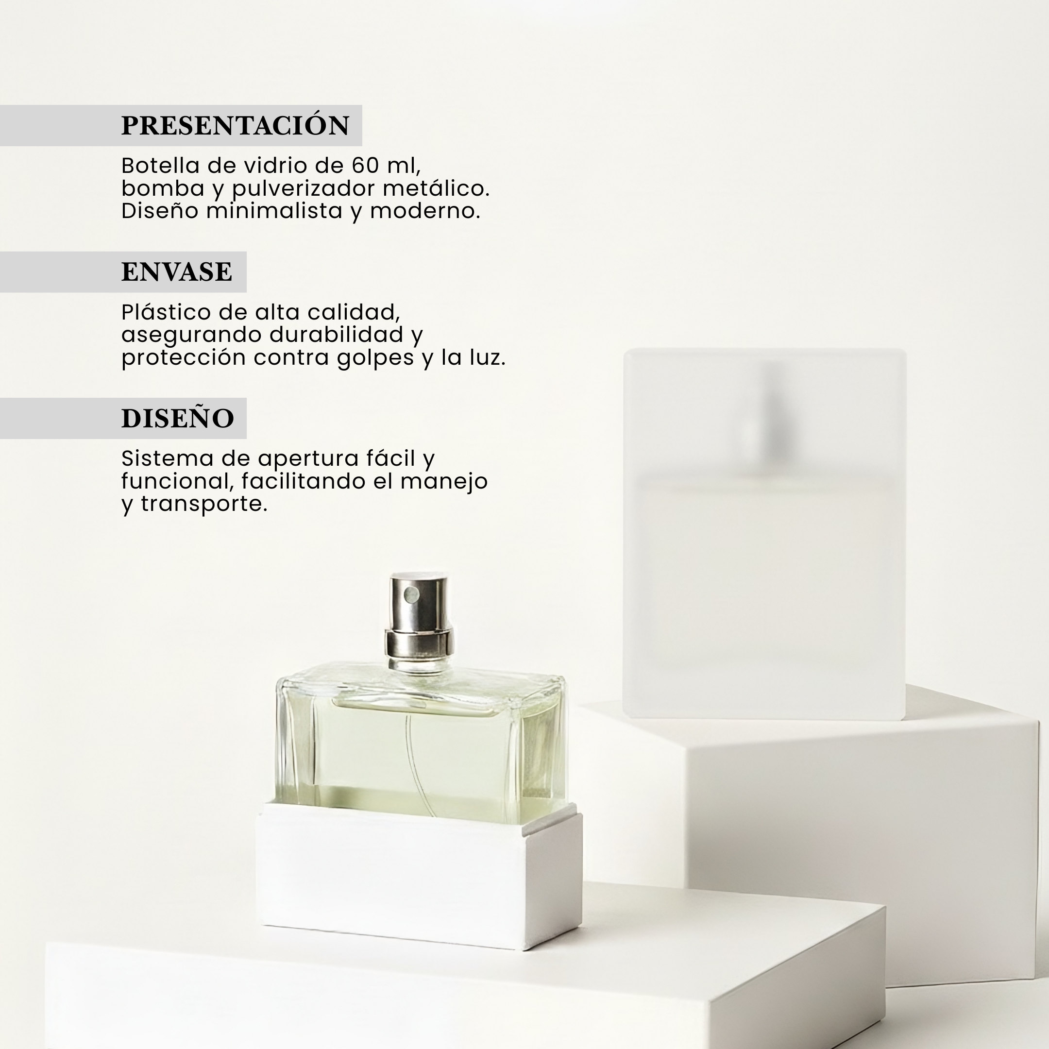 Todas nuestras fragancias son réplicas premium de 60 ml, desarrolladas para ofrecer una excelente fijación y duración.
